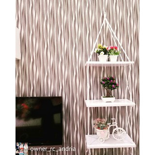 Kami menyediakan kebutuhan Homedecor anda, Mulai Wallpaper Dinding (Lokal/Import), Rak Gantung, Lampu Kamar, Walldeco serta produk homedecor lain nya.Pengiriman SETIAP HARI Via JNE ya !!Reseller Welcome !!Silahkan diorder guys, yang pengen tampil kekinian, produk baru dari Samju gallery jogja, dijamin blm ada di olshop lain ^_^We Are Trendsetter ;)A. Highlight : Modern MinimalisKesan Klasik & EleganBahan kayu solid Beban maksimal 5 KGHandmade from Samju Gallery jogjaB. Deskripsi :Rak Dinding Gantung Minimalis, Memiliki banyak fungsi sekaligus memperindah ruangan anda.Pemakaian di dalam ruangan bisa untuk menaruh barang keperluan anda, seperti buku, pernak-pernik, poto, dll, snack cemilan, atau keperluan yg lain. Pemakaian di luar ruangan bisa untuk menaruh pot bunga, helm, sandal/sepatu dll, sekaligus menambah keindahan tentunyaCARA PEMESANAN:1. Cantumkan pilihan Warna RAK & TALI di kolom keterangan saat checkout2. Cantumkan pilihan anyaman Tali LURUS atau SILANG3. Bahan Kayu Albasia, bukan triplek atau papan partikel/PLYWOOD jadi pasti lebih kuat dan solid4. Untuk order CUSTOM (Beda warna Rak + Tali ) silahkan pilih variasi nya ya,,,Detail Produk:• Material Kayu : Albasia• Jumlah Rak : 3 susun• Tebal : 2cm• Ukuran kayu : 15*40cm• Jarak antar papan : 30cm• Tali : Kur 5mmC. PerawatanBersihkan noda dan debu dengan Lap basahPembelian partai besar kami layani yaaa….Reseller Welcome....Regards,saMju Gallery Jogja-#rak #raksepatu #rakgantung #rakserbaguna #raktas #rakmultifungsi #raktasgantung #rakbuku #rakjilbab #rakkayu #rakdi