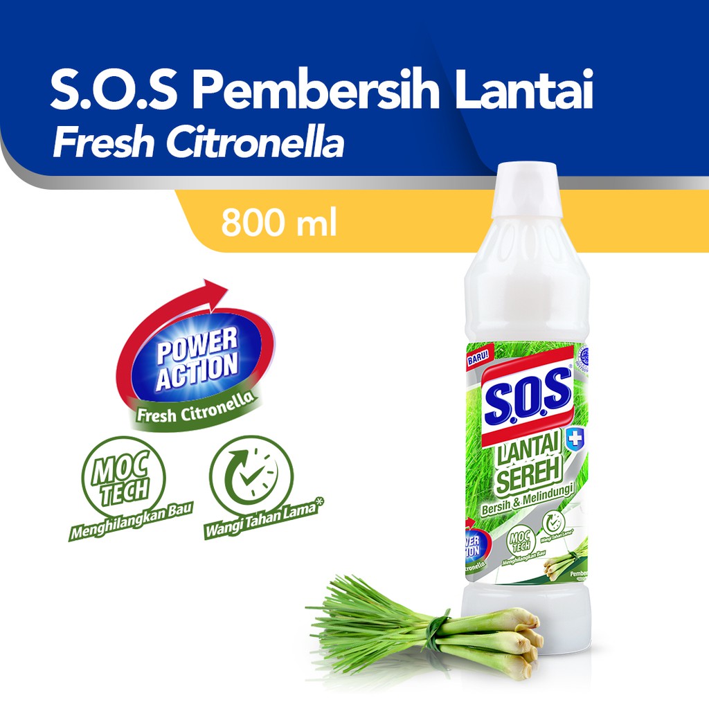 SOS Pembersih Lantai - Sereh Botol [800 mL] merupakan pembersih lantai yang mengandung minyak sereh alami yang dapat mengusir serangga lalat, nyamuk, kecoa, dan semut yang ada di lantai. Selain itu pembersih lantai ini mengandung formula anti-bacterial (benzalkonium chloride) yang terbukti 99% membunuh kuman yang ada di lantai. SOS pembersih lantai aman untuk keluarga walaupun digunakan sehari - hari.Berat Bersih : 800 mLPetunjuk pembelian & pengembalian :1. Pilih variasi yang diinginkan, kami tidak menerima keluhan bila dikirimkan variasi sama dengan yang dipilih sementara ada variasi lain di catatan2. Pengembalian barang tidak akan diterima bila cust telah menekan tombol pesanan diterima3. Pengembalian barang tidak diterima bila kami telah mengirimkan sesuai variasi yang di pilih, dan pelanggan menuliskan variasi yang berbeda.4. Pengembalian barang hanya diterima bila barang yang diterima masih belum terbuka segelnya atau belum digunakan yang disebabkan barang rusak / salah barang5. Penggantian dana akan disetujui setelah pengecekan batch untuk memastikan barang tersebut dikirim dari Official Tempo Store6. Dengan membeli barang di Official Tempo Store maka Anda dianggap telah membaca dan menyetujui prosedur iniIsi: