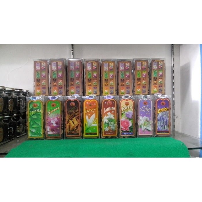 .Buhur dupa Malaysia isi 50pcsAroma :- green tea- sakura- sandal wood- champaca- jasmin - rose- lily- lavenderHarum Bakhour atau Bakhoor adalah tradisi berabad-abad yang masih tersebar luas di dunia Arab saat ini.Anda akan menemukan banyak aroma harum yang berbeda dari Bakhoor dan dupa.Bakhour dihasilkan dari tumbuh-tumbuhan, bunga, hutan dan minyak parfum dibakar di atas