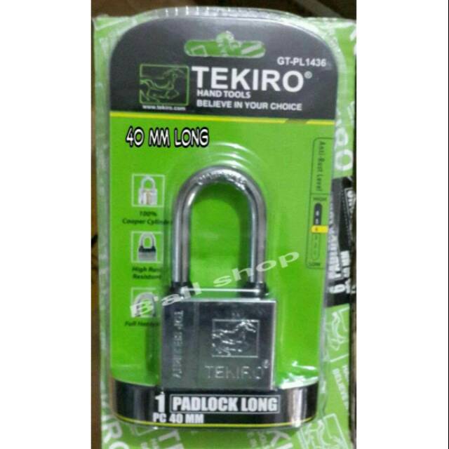 Gembok 40 leher panjang tekiro.Dapat di gunakan utk mengunci piringan pada motor. Original 100% T
